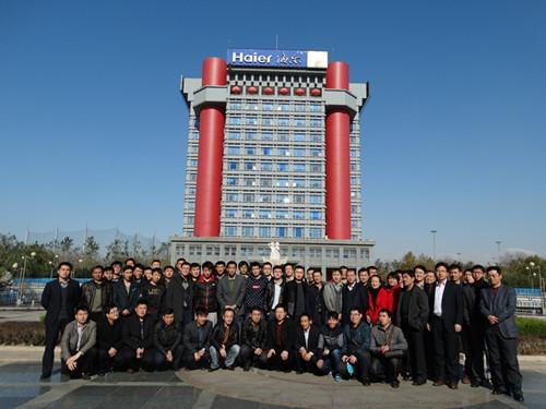 第一批人员于11月6日下午抵达青岛,经过17小时的旅途,晚餐后大家都早早休息了。培训第一天一大早,所有人员来到了海尔集团青岛总部参观。走进海尔大学,感悟了海尔大学“创新、求是”的校训,精致的建筑和优雅的环境让大家流连忘返。之后,参观人员来到了海尔空调总装车间,目睹了从一个个零部件经过流水线组装成一个完整空调的过程。在海尔总部工业园中心大楼前合影以后,参观人员来到了海尔企业文化创新展厅。在讲解人员的带领下,我们随着海尔的发展轨迹,看到了海尔从1984年创立,经过28年创业创新,从一家资不抵债、濒临倒闭的集体小厂发展成为全球白电第一品牌的整个发展壮大历程。展厅以海尔各个时期的发展战略为主线,展出了各个发展战略阶段海尔取得的重要成果和重要事件记录。从开始的名牌战略到多元化战略,再到国际化战略和全球化品牌战略,2012年,海尔提出了网络化战略。参观完了企业文化创新展厅,来到了海尔集团会议室,观看了海尔企业文化短片。而发展历史中的砸冰箱事件,无疑给了每个人巨大的震撼。电影《首席执行官》讲的就是海尔的发展历程,其中砸冰箱片段就是砸冰箱事件的真实反映。